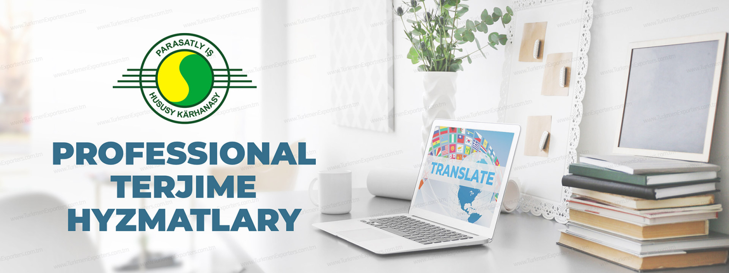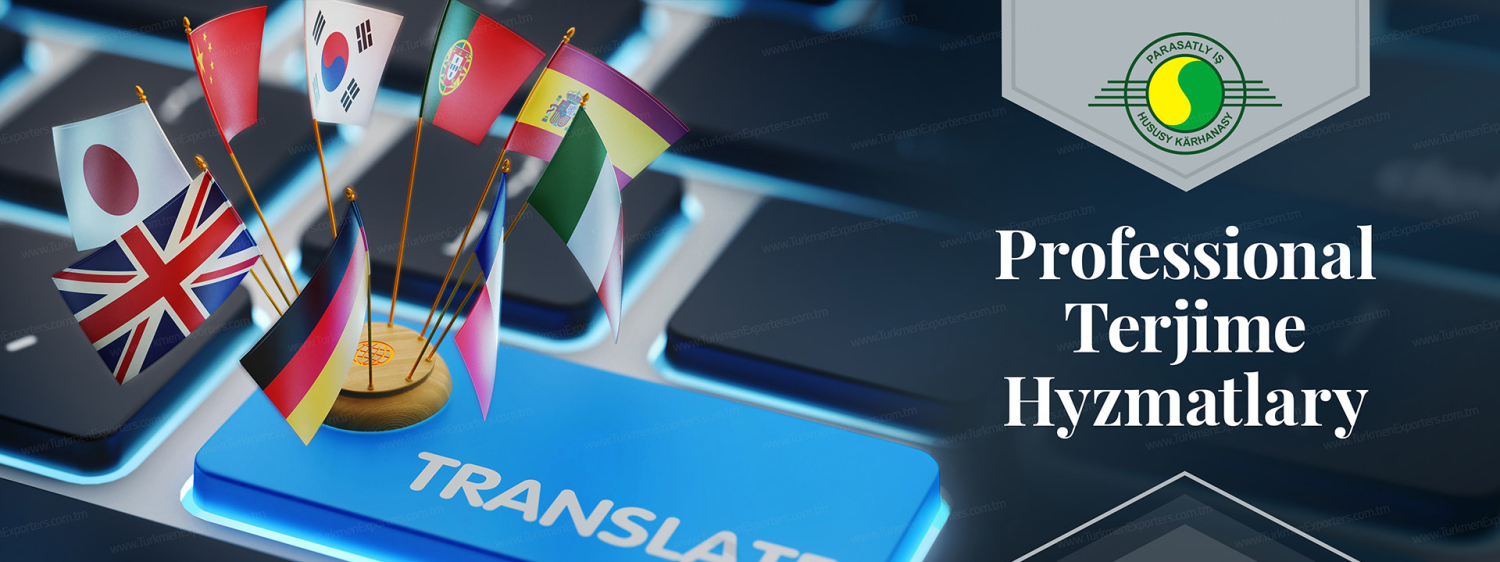 Terjime hyzmatlary (Diller: türkmen, rus, iňlis, nemes, fransuz, ispan, italýan, polýak, ukrain, rumyn, türk, hytaý, ýapon, koreý, arap, pars we beýleki daşary ýurt dilleri)