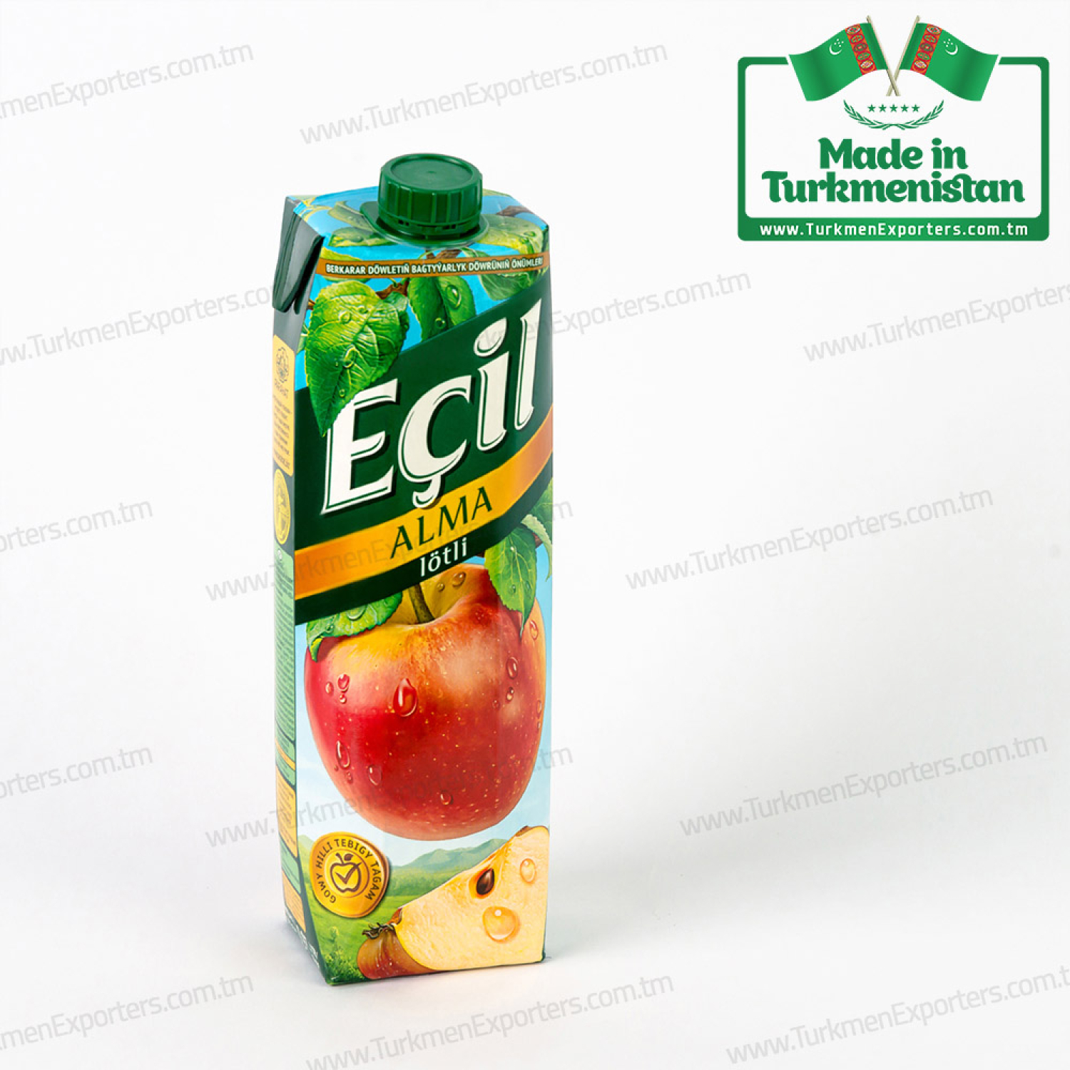 - Bir karton gutyda 12 sany 1 litrlik EÇIL - miwe şireleri.
