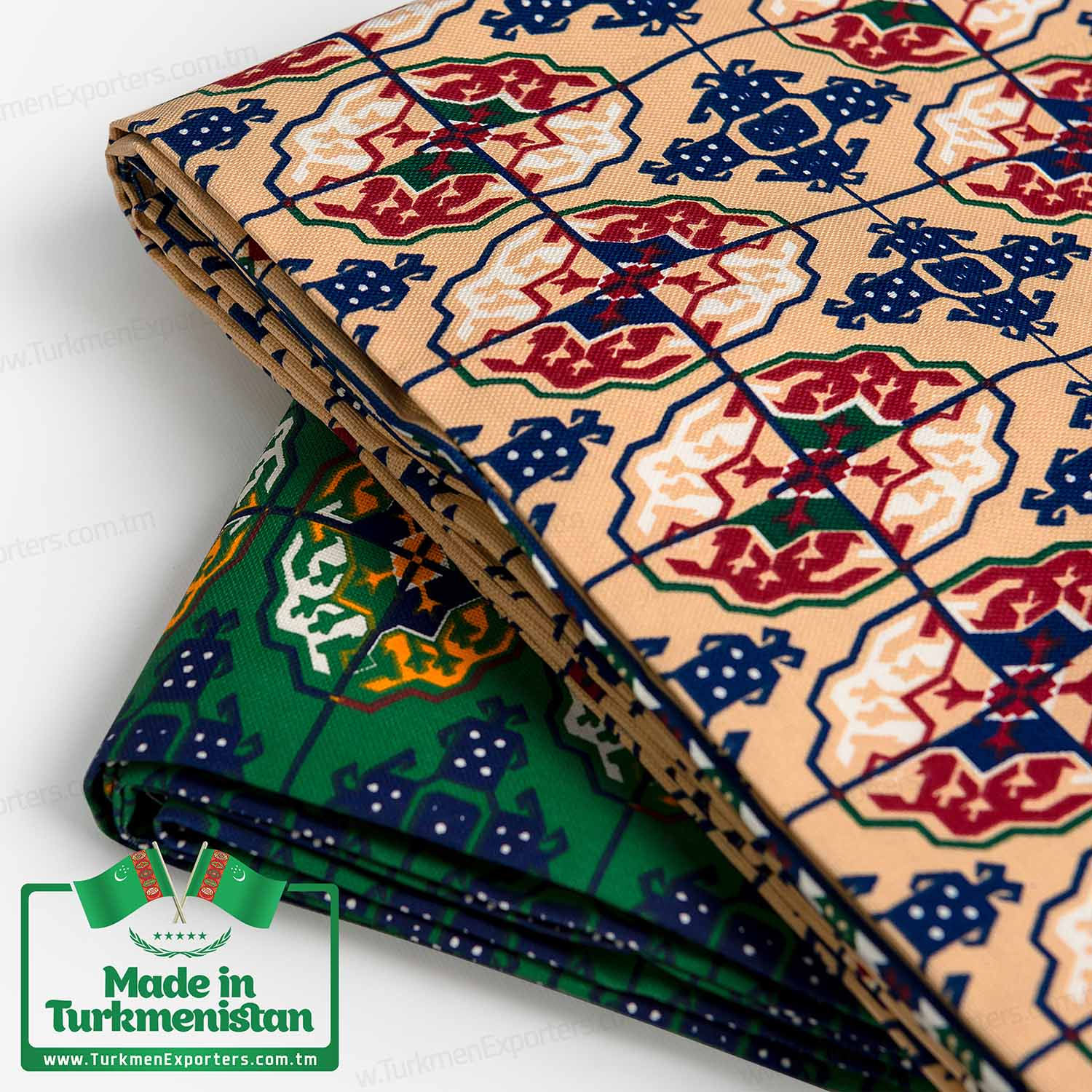 - Цвета: зеленый, красный, кремовый (с туркменским орнаметном)